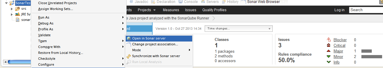 Now the project is associated with eclipse and you can view various reports inside eclipse (See the below screen shot)